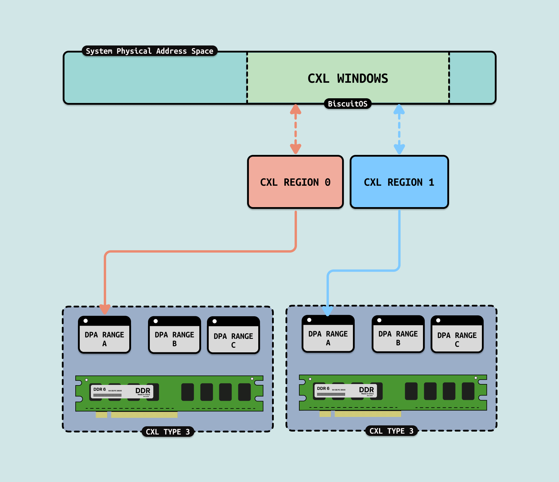 CXL: CXL 可以将 CXL Type3 内存映射到系统物理地址空间,形成慢速内存. 对应 CPU 进程,其并不能识别到这段内存与普通 DDR 有何区别,内核使用分层内存(Tiered Memory) 实现对 CXL 内存的访问. 在 CXL1.0/2.0 里,在单主机上可以支持 CACHE 一致性,在 CXL3.0 多主机节点支持 CACHE 一致性,因此 CPU 进程可以通过 LD/ST 方式直接访问 CXL 内存.