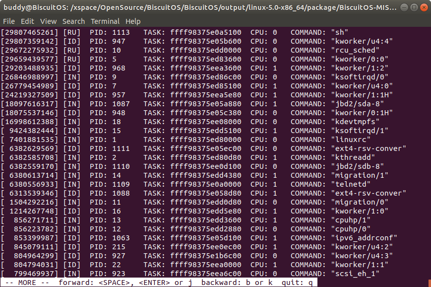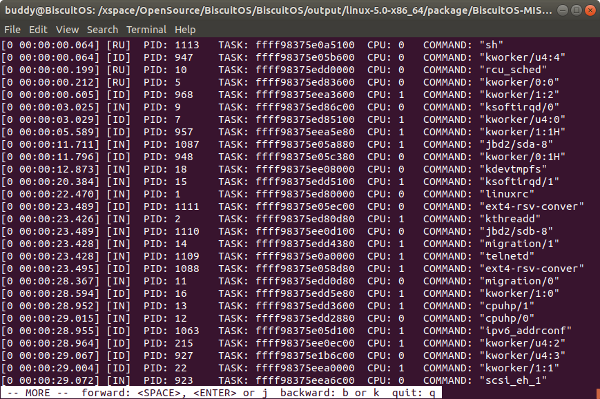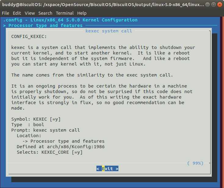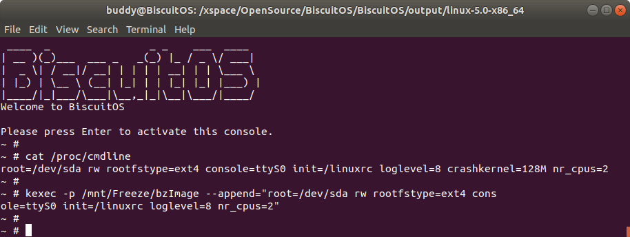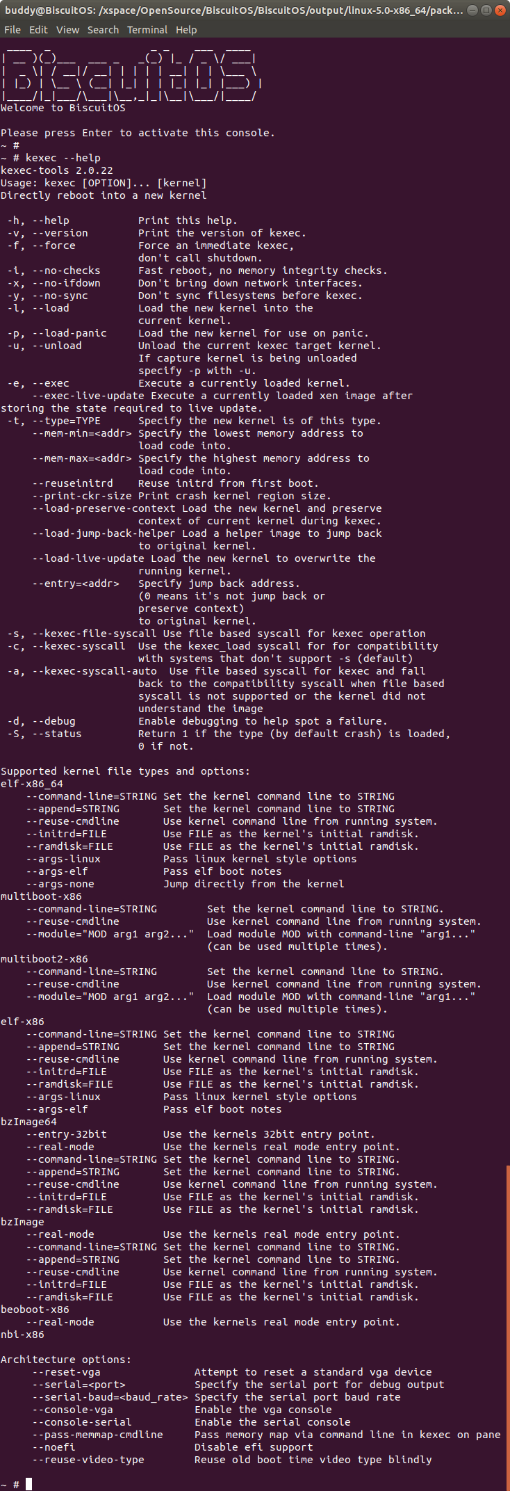 在调试过程中,经常需要重启内核以还原现场,进而复现某些问题予以追踪解决. 由于每一 次的内核启动,都会伴随着一次的 boot 自检. 但是,对于已经启动过的同一内核,重复的 boot 自检完全没有必要,且造成了资源浪费. 此外,有时候需要使用一个小内核来启动一 个大内核. 在这两种需求下,kexec 应运而生,kexec 是一款可以让您重新启动到一个新 Linux 内核的快速重新引导功能部件,不再必须通过固件和引导装载程序阶段,从而跳过序>列中最长的部分,大大减少了重启时间. 对企业级系统而言,Kexec 大大减少了重启引起的 系统宕机时间. 对内核和系统软件开发者而言,Kexec 帮助您在开发和测试成果时可以迅速 重新启动系统,而不必每次都要再经历耗时的固件阶段. BiscuitOS 已经支持 kexec-tools 的自动部署,开发者可以参考如下命令: