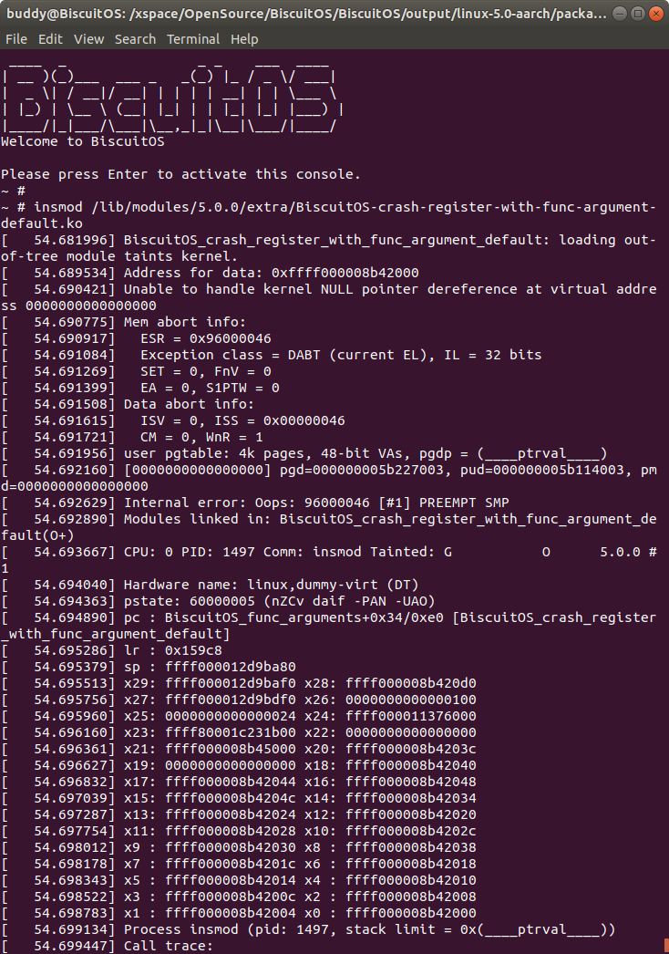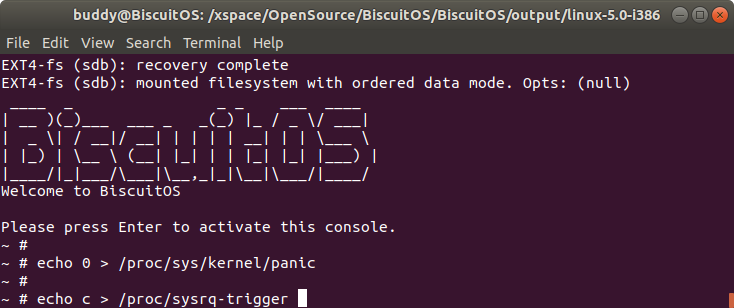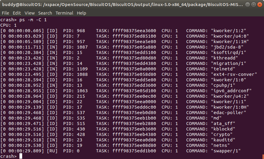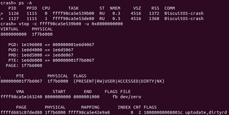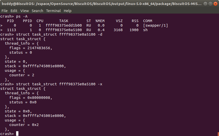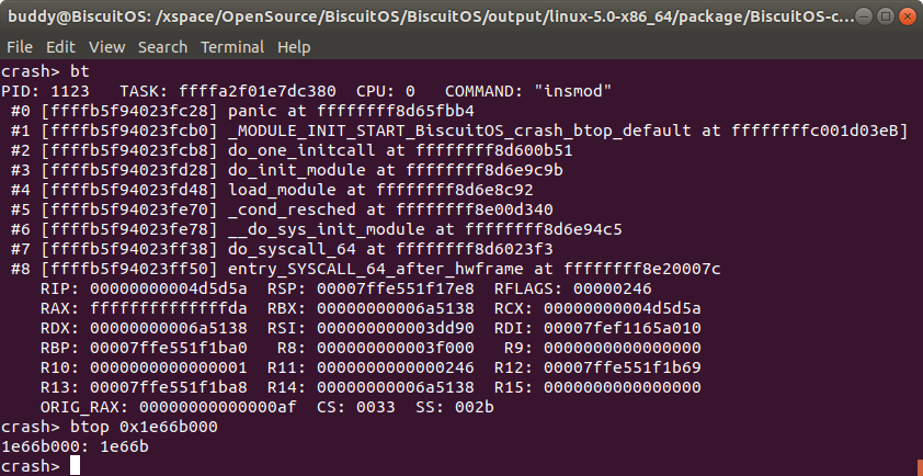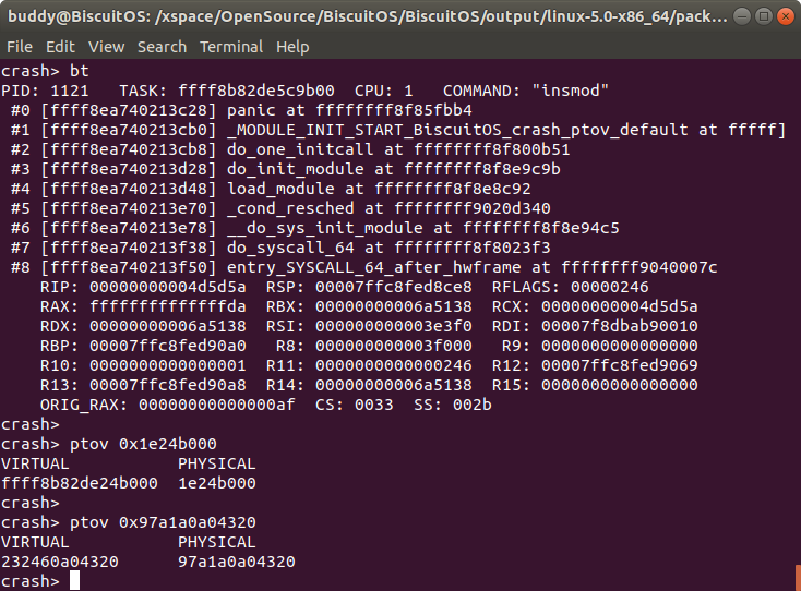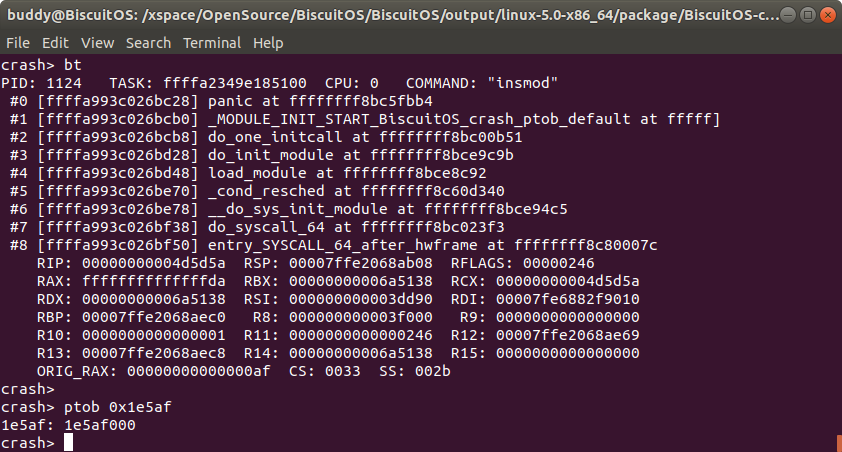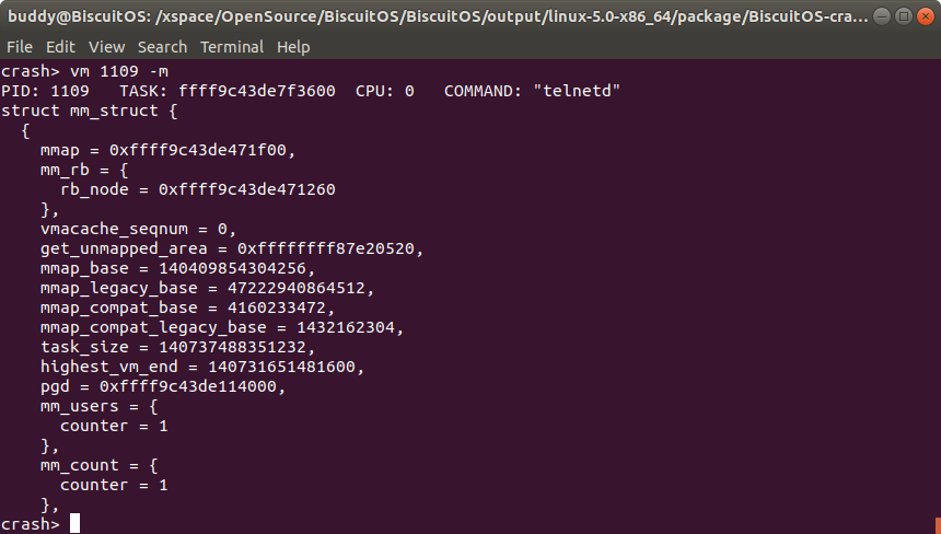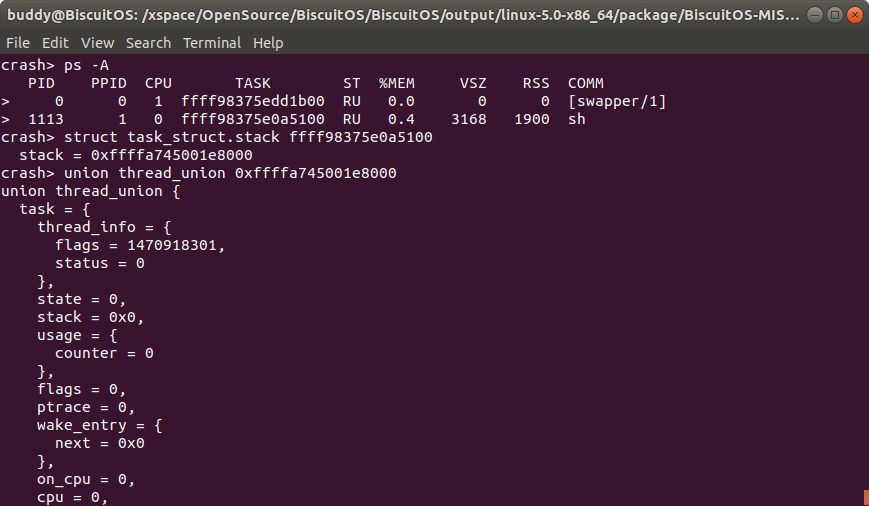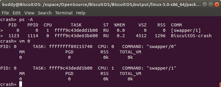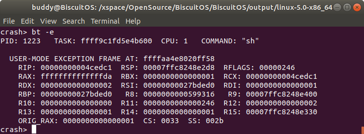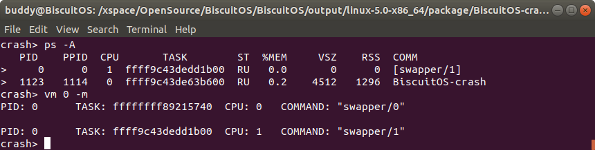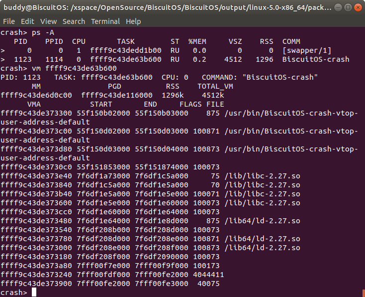 cp /proc/vmcore <Dump-file>“/proc/vmcore” 包含了 kdump 的内容,可以将 kdump 的内容拷贝到 BiscuitOS 的一个磁盘上,以便后期使用 crash 进行问题分析排除。