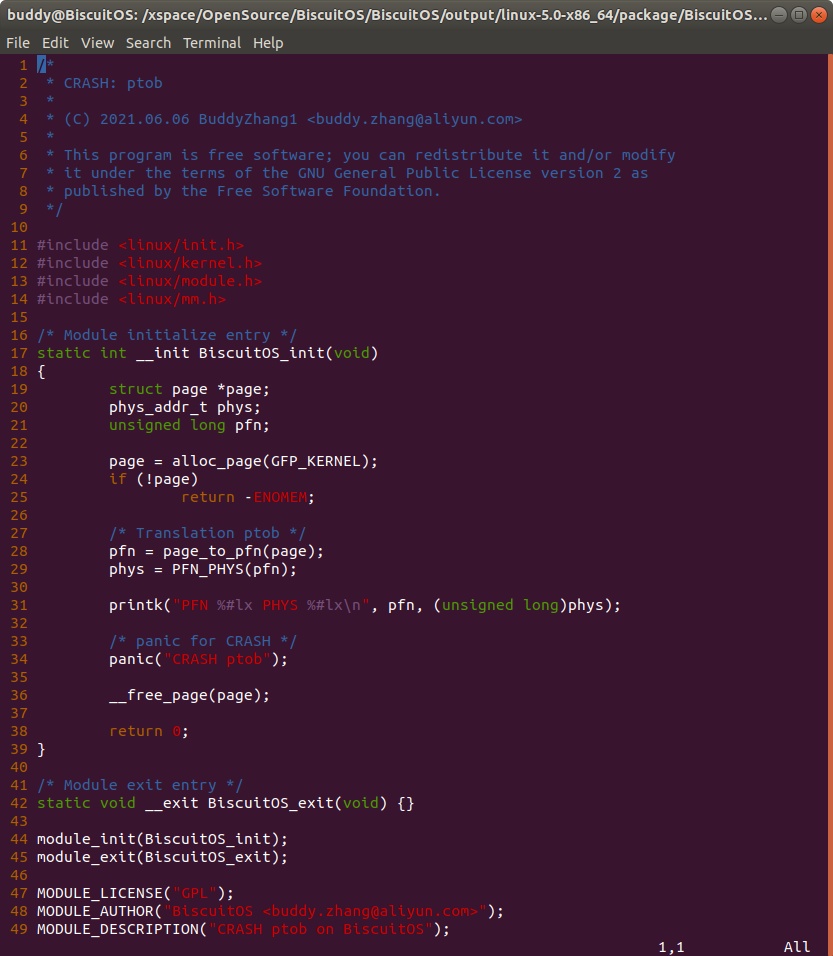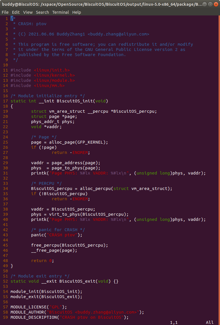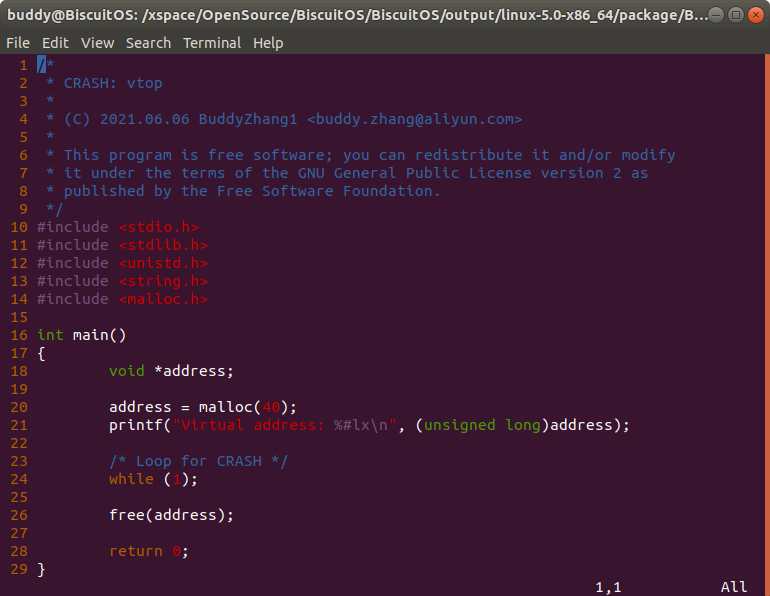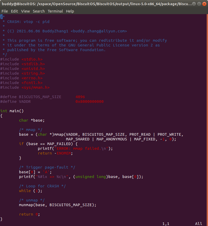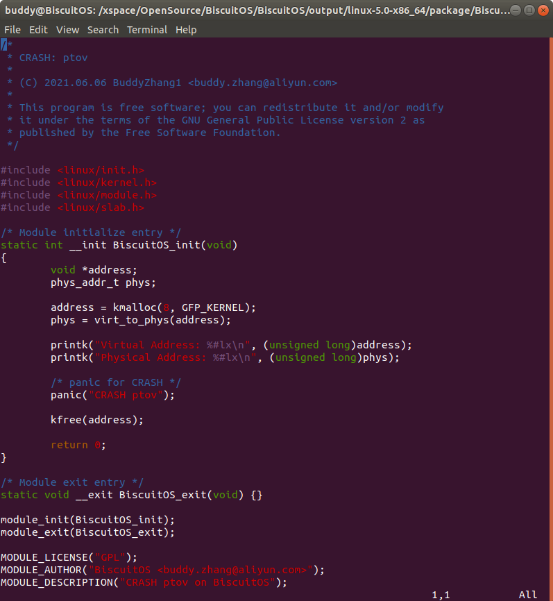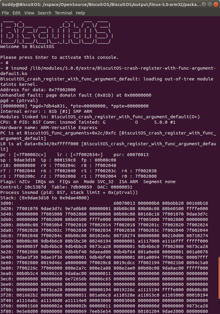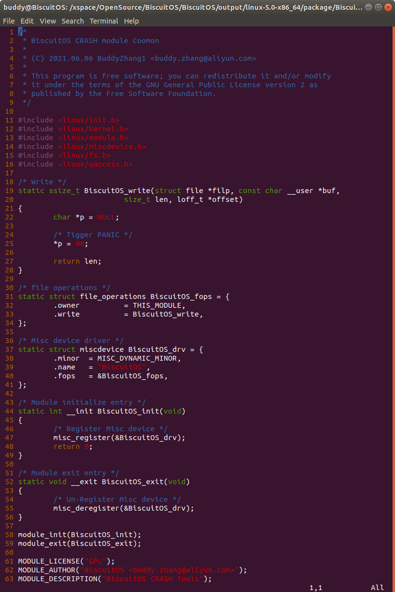 cp /proc/vmcore <Dump-file>“/proc/vmcore” 包含了 kdump 的内容,可以将 kdump 的内容拷贝到 BiscuitOS 的一个磁盘上,以便后期使用 crash 进行问题分析排除。