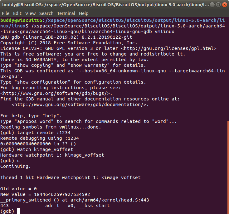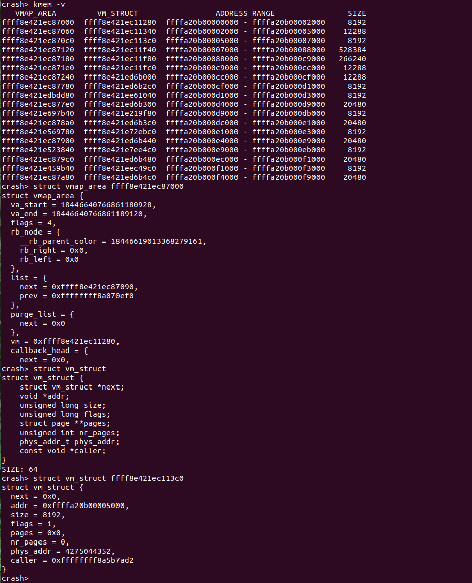 crash <Dump-file> vmlinux kimage_voffset=<voffset>需要使用 voffset 为正确的地址才能使用 crash 正常调试内核转储文件。voffset 地址的获得方法通过 gdb 获得: