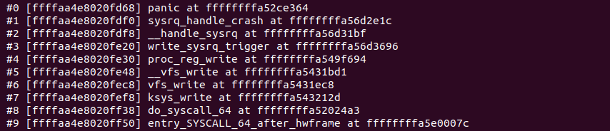 当在系统中成功运行 kexec 中,接着可以手动触发内核 panic,以此查看功能的完成性: