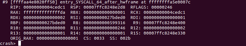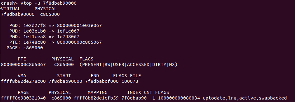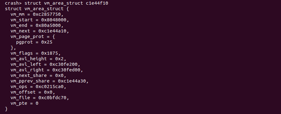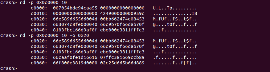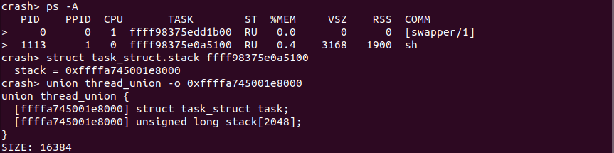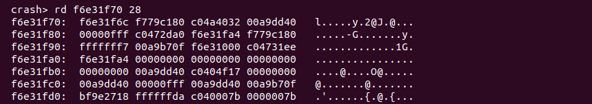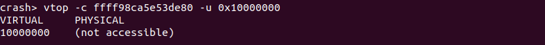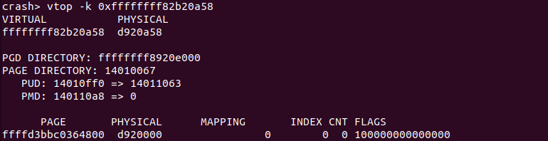 此时将 18446462597927534592 转换为十六进制 0xFFFEFFFFD0000000, 那么使用 crash 工具如下: