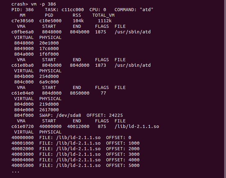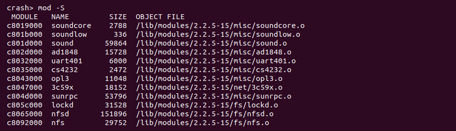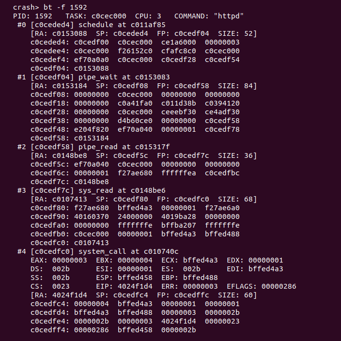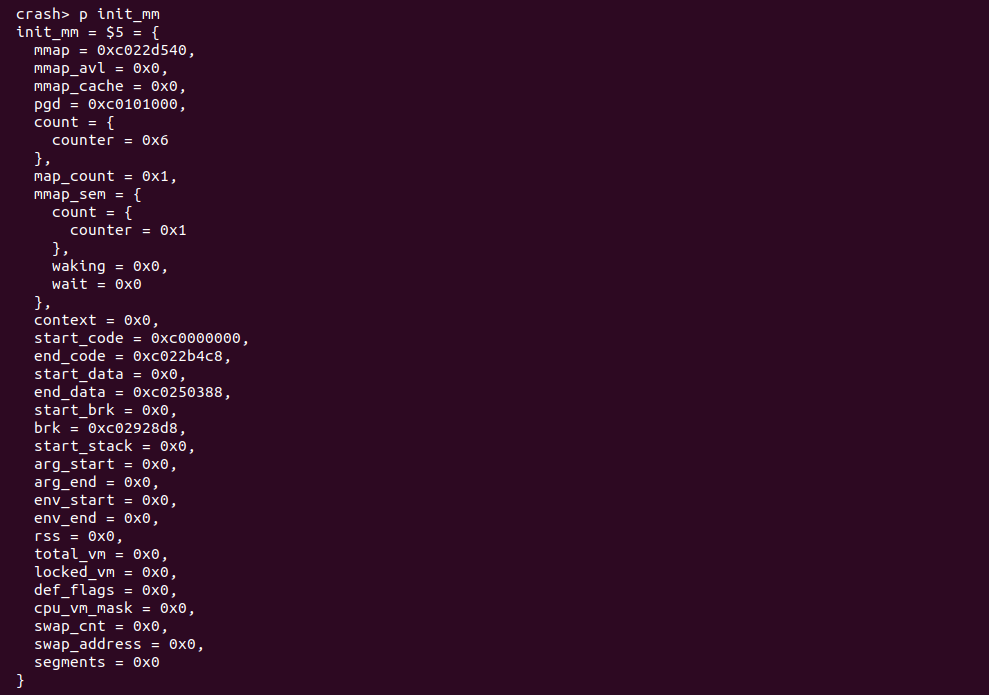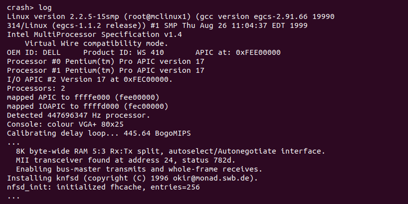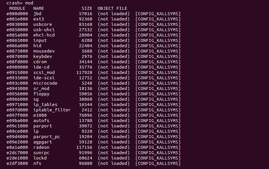 当获得内核核心转储文件之后,可以使用 CRASH 工具进行分析,同样分析方法使用如下命令: