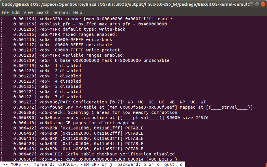 range=start-[end]BiscuitOS 中内核的 CMDLINE 位于项目目录下的 RunBiscuitOS.sh 脚本中,其中 CMDLINE 变量中,可以参考如下进行添加:
