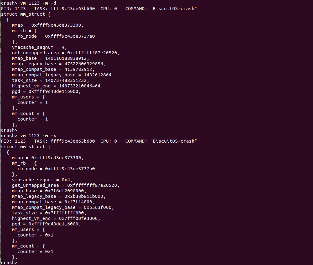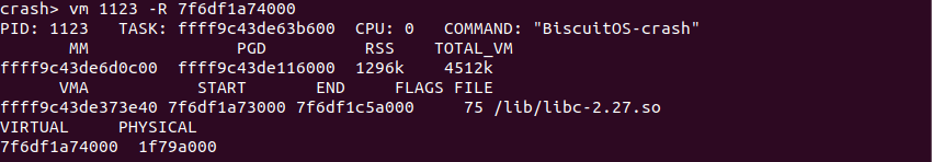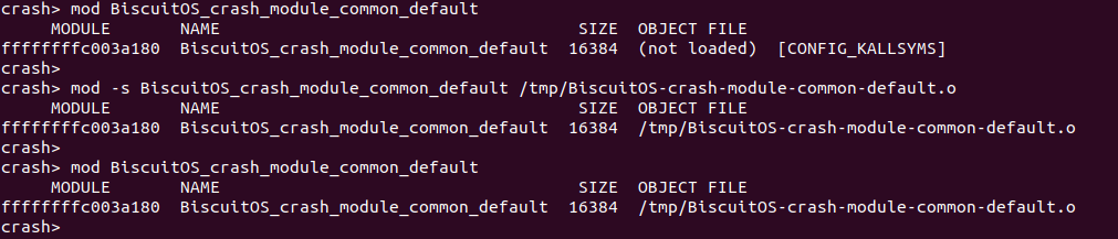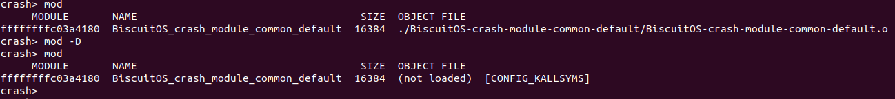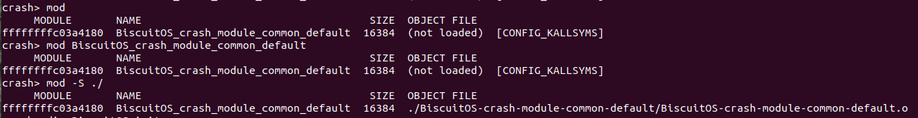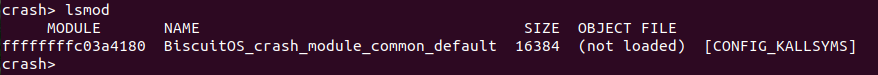 当从 BiscuitOs 的 Freeze 磁盘上获得了 kdump 的内容之后,接下来使用 crash 排除问题,此时需要使用带有 debug-info 的内核镜像,因此可以使用 vmlinux,参考如下命令: