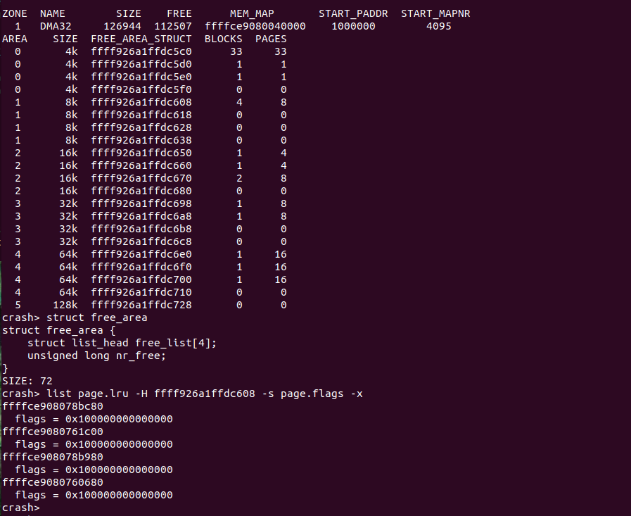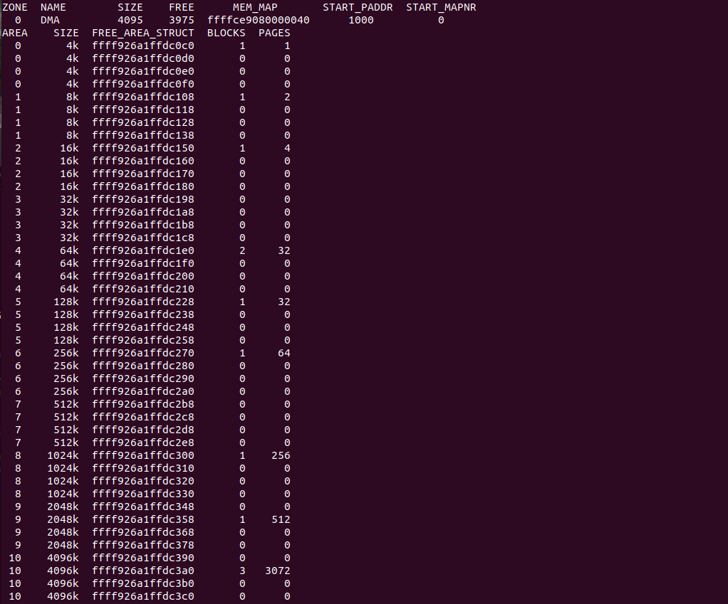 - ADDR 字段指明 ZONE 对应 struct zone 的地址