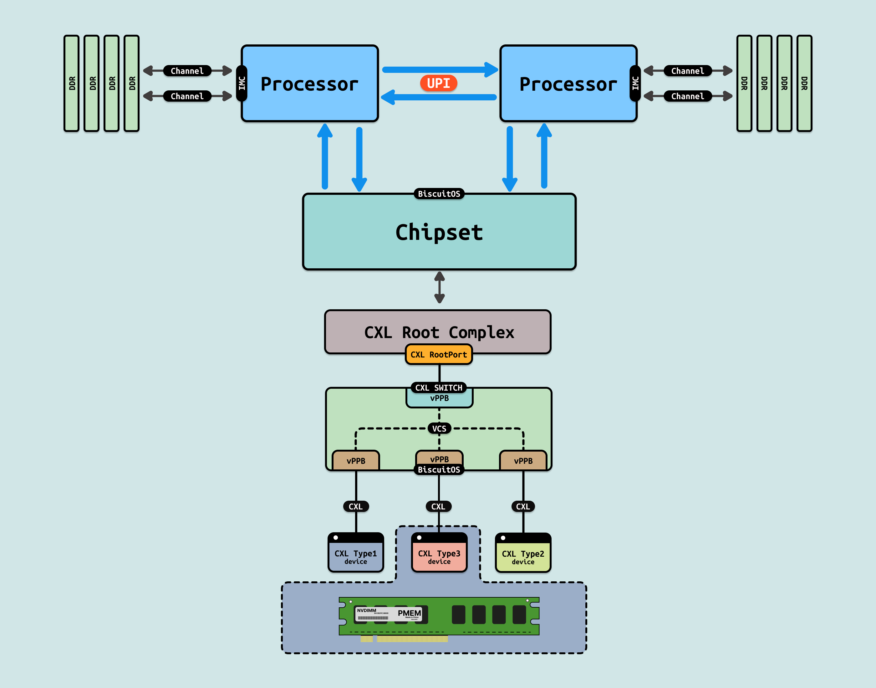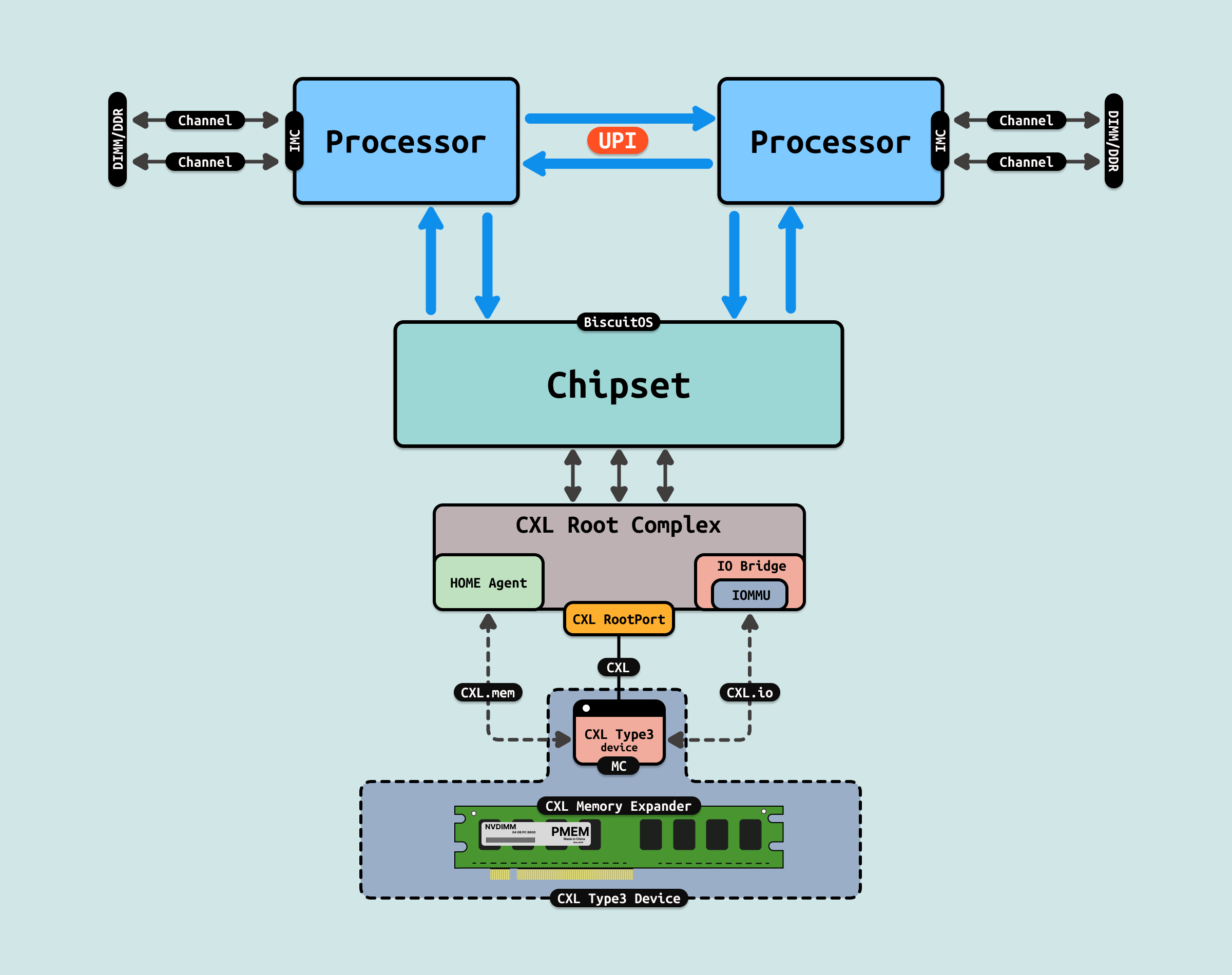 BiscuitOS 已经全量支持 CXL 2.0 实践环境,部署基于《BiscuitOS 用户手册 1.2 节》. BiscuitOS 提供了不用硬件拓扑的 CXL 实践环境,接下来对每种环境进行讲解: