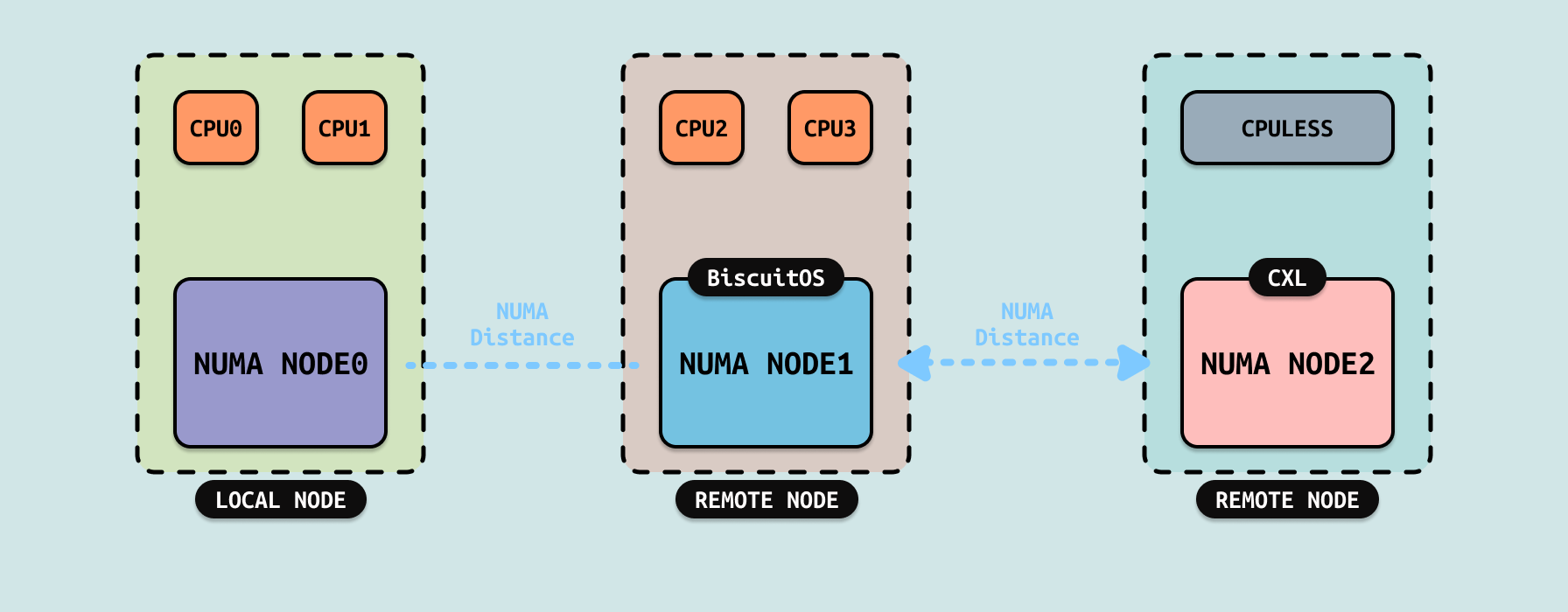 Tiered Mode: CXL Type3 设备以 SYSTEM-RAM 模式插入系统,并以独立的 CPULESS NUMA NODE 节点存在,系统将 DDR 所在的 NUMA NODE 成为快速内存,而将 CXL 所在的内存成为低速内存,操作系统在软件层面会将经常访问的热页(Hot Page)放在 DDR,而将不常访问的冷页(Cold Page)放到 CXL 上,并基于 NUMA Balancing 根据页的冷热程度在 DDR 和 CXL 进行升级(PROMOTION)和降级(DEMOTION). Tiered 模式的优点: