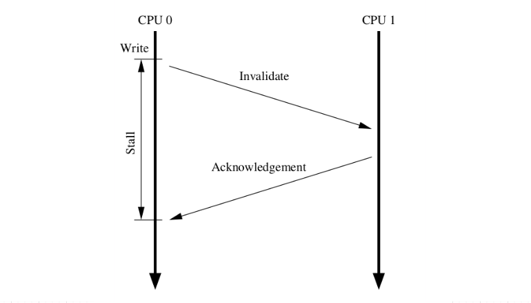 - C: CPU0 在没有收到所有 CPU Invlidate ACK 之前进入 Stall 状态