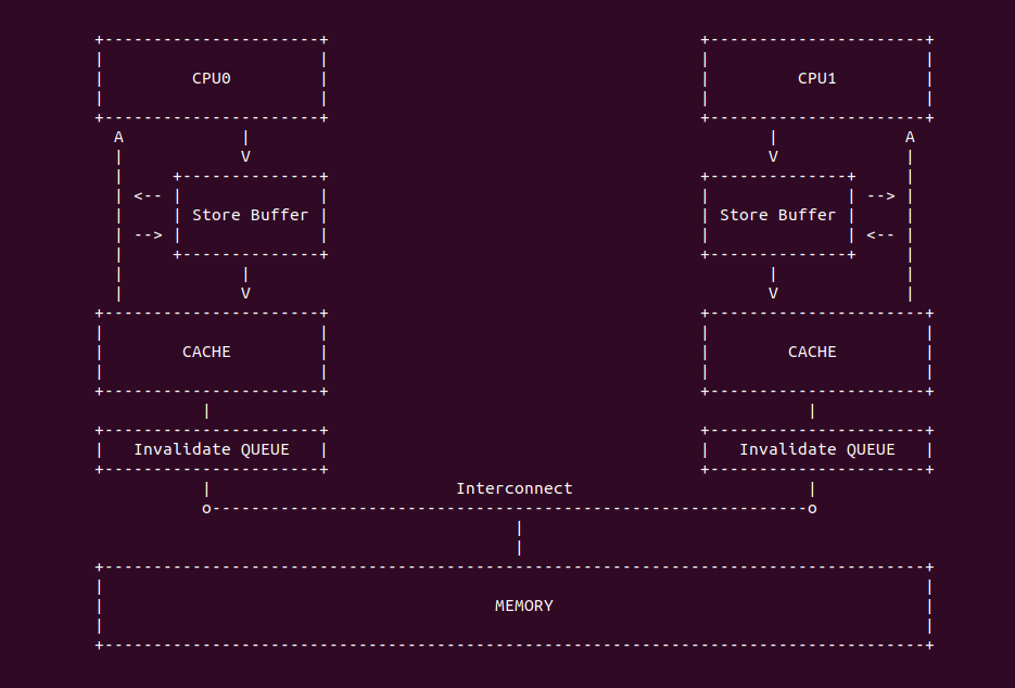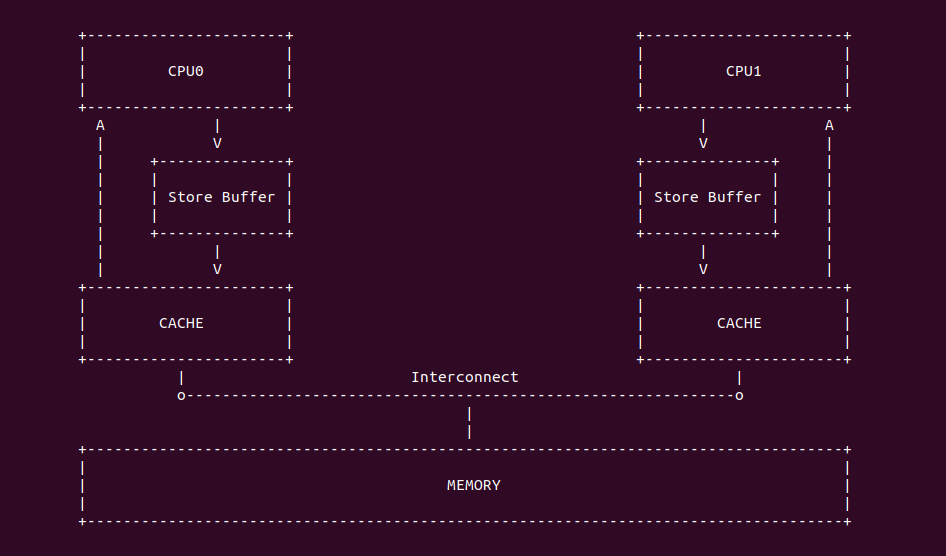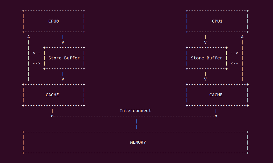可以看到 Store Buffer 的加入之后,Store 操作不再阻塞 CPU 的执行,并在等待过程中执行其他指令,但这也是有问题的,这将会导致 Store 指令的执行顺序改变,也就是通常所说的指令乱序, 这里不展开讲,先给大家感受一下 Store Buffer 的存在和作用.