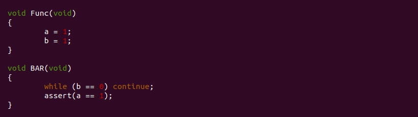BiscuitOS 启动之后运行两个程序,BiscuitOS-MEMORY-BARRIER-OUT-COMPILER-default-O2 是经过 O2 优化的程序, 其优化包括指令重排,而 BiscuitOS-MEMORY-BARRIER-OUT-COMPILER-default-O0 是采用 O0 编译,即不优化. 两者运行之后可以看到 O0 优化之后的程序 Thread1 和 Thread2 同时进入了关键区域,与预期的不符合,而 O2 优化的程序只有一个线程可以进入关键区域。解决乱序问题的一种方法是使用内存屏障(memory barrier) 或原子操作(atomic operations)。例如,C11 中引入了 stdatomic.h 头文件,提供了一些可以用于编写并发代码的原子类型和操作。使用这些原子操作可以帮助确保代码的正确顺序,避免乱序问题, 可以查看 main-atomic.c 源码: