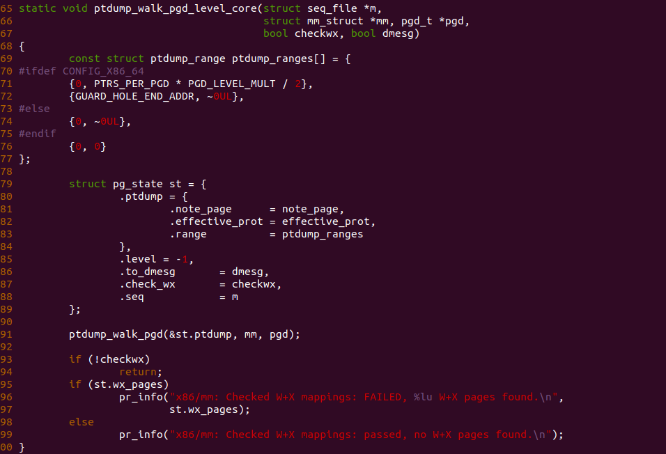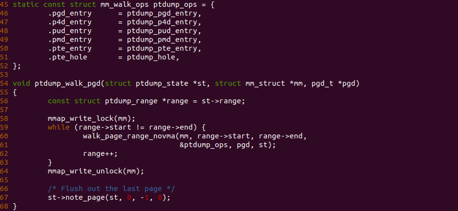 - ptdump: 描述需要 DUMP 虚拟内存一段 Region 的范围.